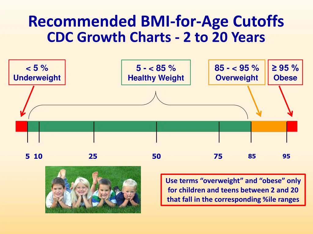 The BMI is a rule of thumb used to define a person as underweight, normal weight, overweight, or obese based on weight, height, sex, and age. The resulting BMI number is then compared to a chart that is specific to one’s age and sex.